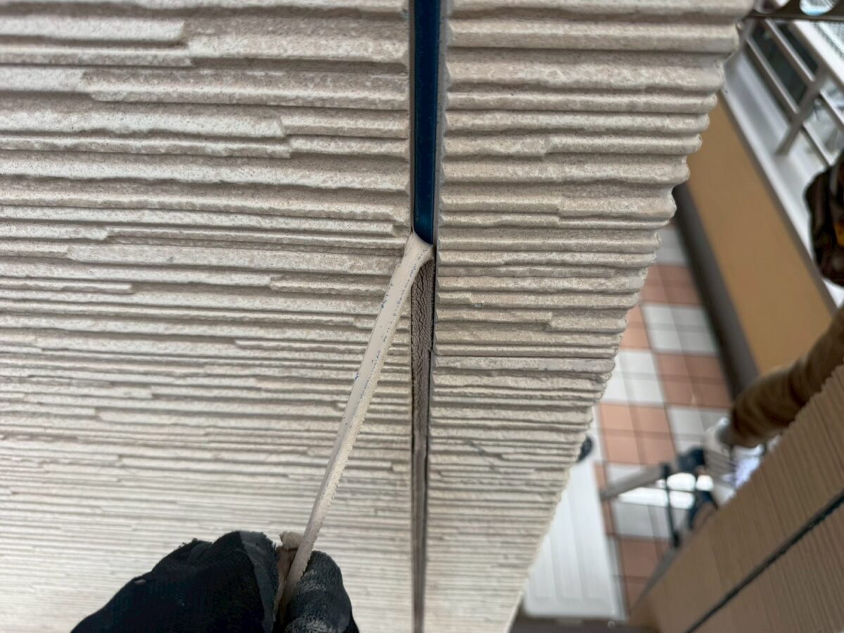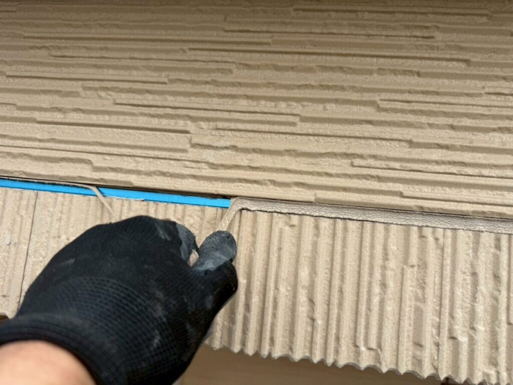 まず最初に行うのは、既存のシーリング材の撤去作業です。サイディングの目地部分に充填されている古いシーリングは、経年劣化により硬化やひび割れが発生しているため、そのままでは新しいシーリングの性能を十分に発揮することができません。そのため、カッターや専用工具を使用し、丁寧に既存シーリングを取り除いていきます。この工程は仕上がりの品質に大きく影響するため、細部までしっかりと確認しながら慎重に作業を進めます。