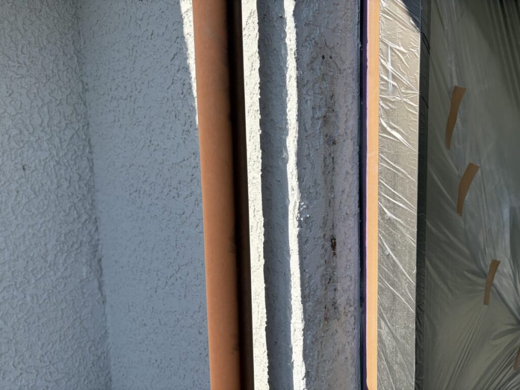 お施主様に使用していない物干し竿掛けの撤去を頼まれていたので塗装前に行いました。