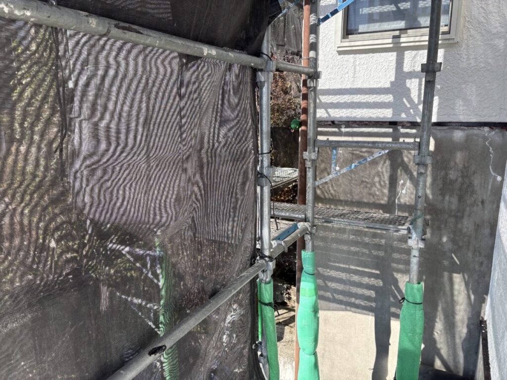 足場安全点検は職人さんが安全に作業を行えるか、がたつき・ぐらつきはないか、安全ネットの取り付け状態は良いか・破損はないかなどを確認していきます。