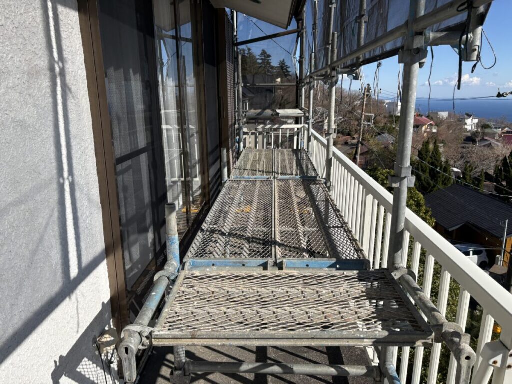 足場仮設工事が終わりましたので足場安全点検を行いました。