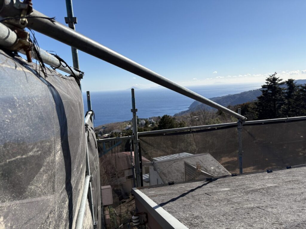 静岡県伊東市で屋根重ね張り工事、外壁塗装工事が始まりました。