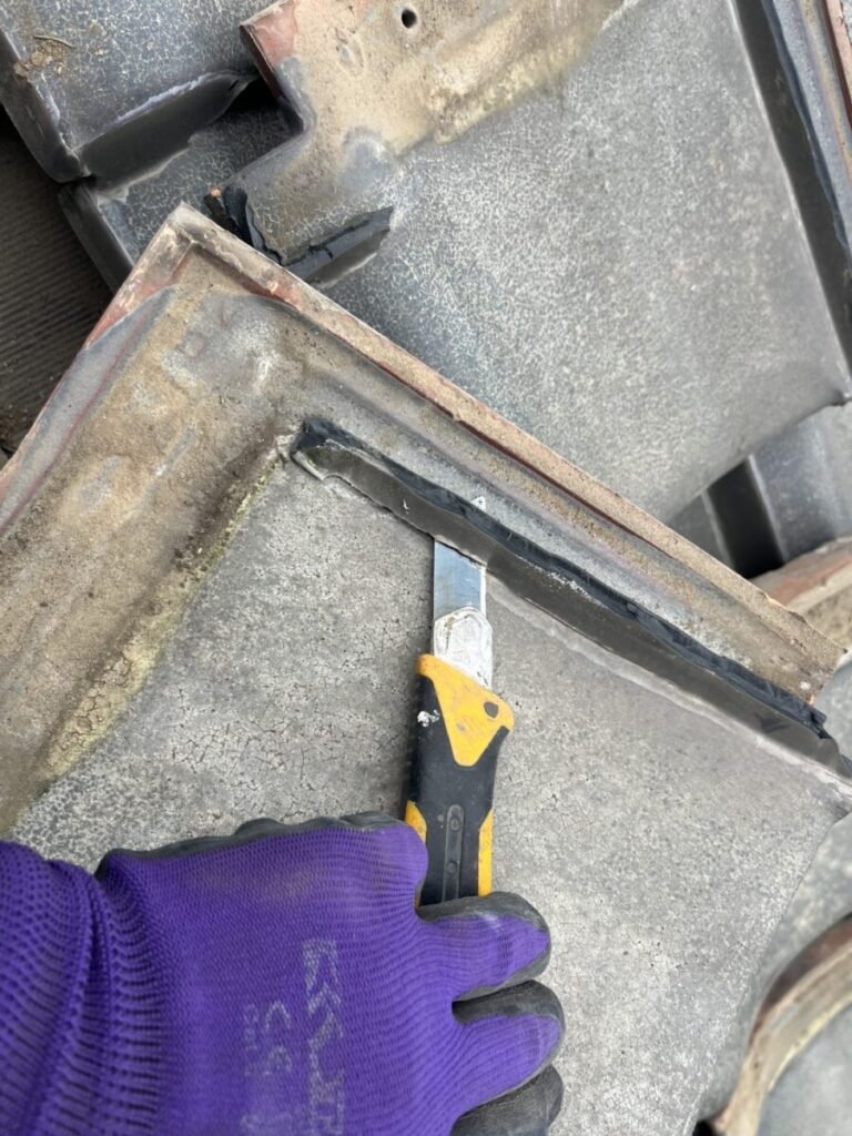 普段なら瓦を剥がしてすぐに作業ができるのですが瓦全箇所にコーキングが付いていて
