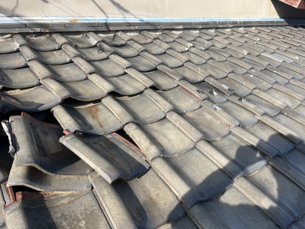 風で瓦は、めくれてしまいましたが割れは、なく瓦を元に戻す作業をしました。