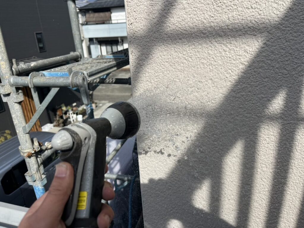散水調査では、疑わしい箇所を一か所ずつ順番に水をかけ、実際の雨を再現していきます。同時にサーモグラフィーで温度変化を確認することで、目では見えない水の侵入経路を可視化していきます。