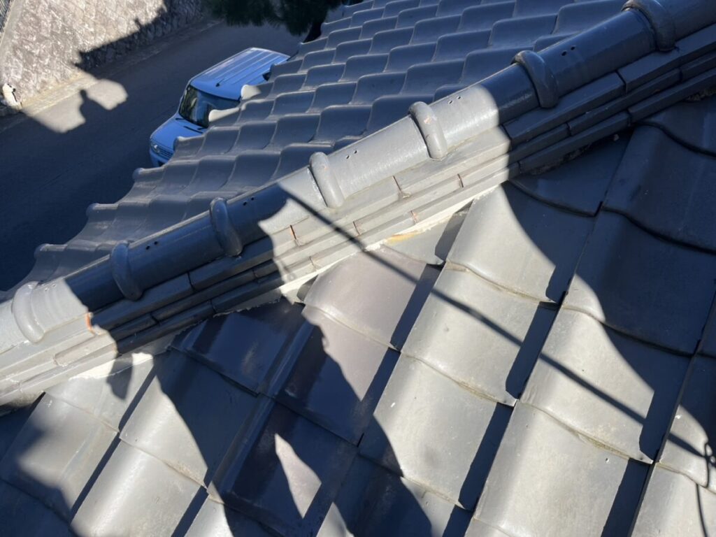 棟瓦付近が割れてしまったので、今回は、棟瓦をバラしての差し替えになります!