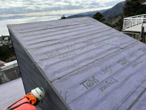 お施主様も足場に上がって一緒に見ていただき、検査を行いました。色もこだわられていましたが気に入っていただき、良かったです。