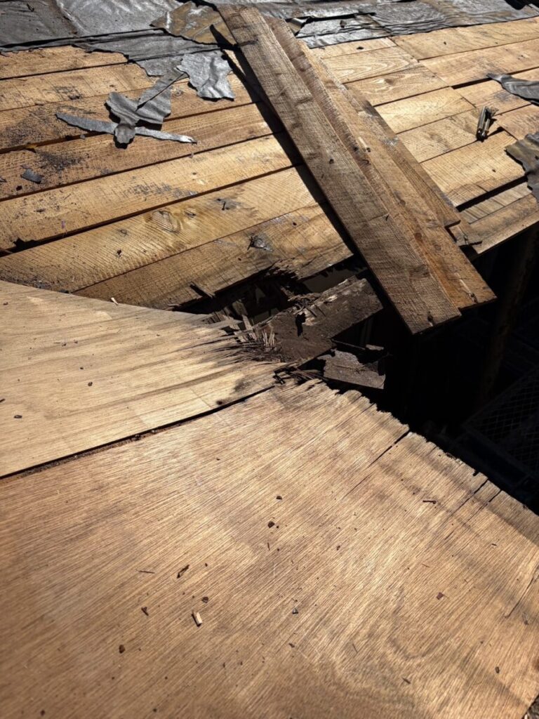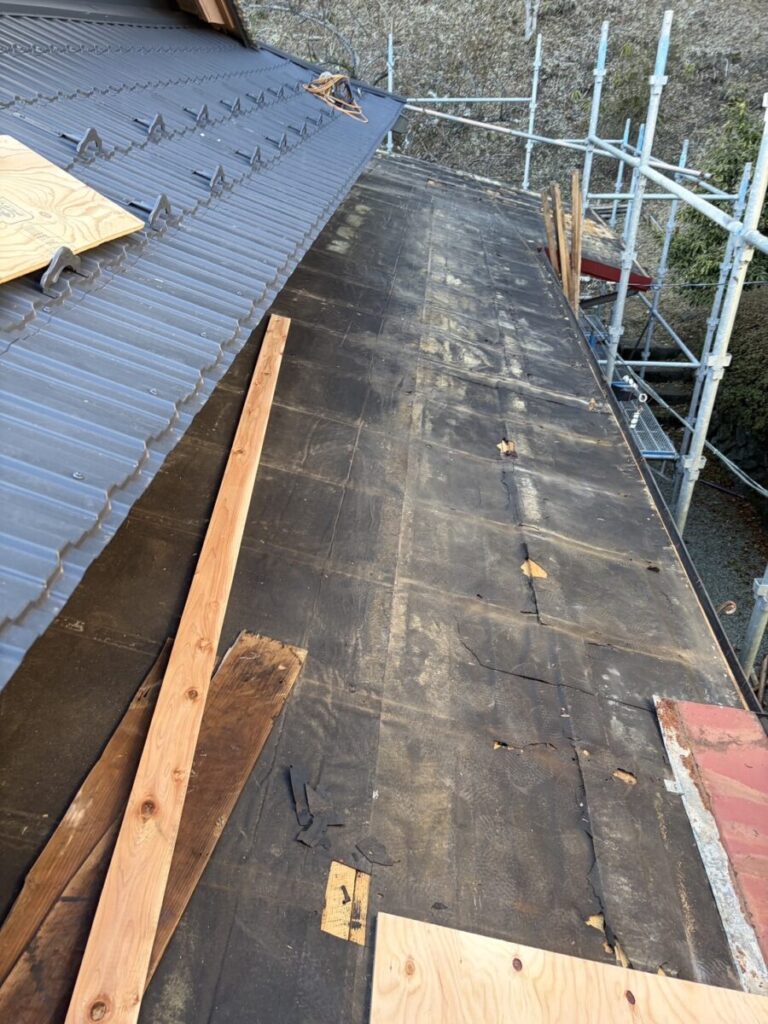 作業を進めていく中で、谷部分の下地を確認したところ、一部に著しい劣化と腐食が見られました。