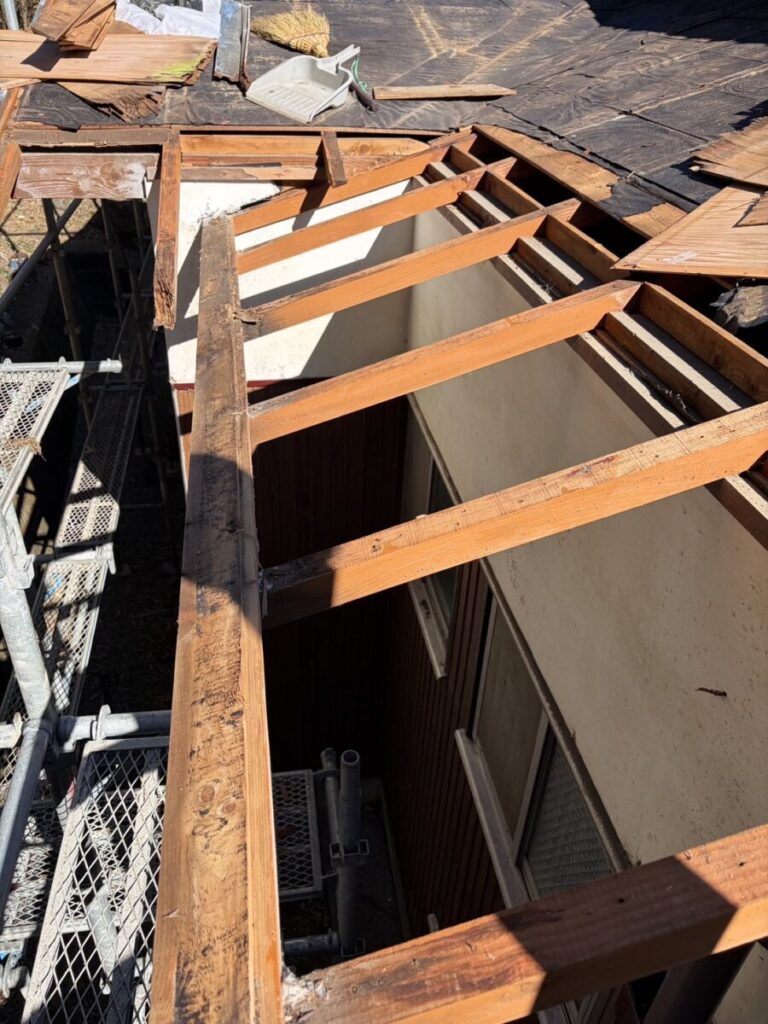 劣化した木材を取り除いた後は、新しい野地板を張り替えて屋根の強度を回復させ、あわせて軒天材も新品に交換しました。下地をしっかり補修することで、今後の雨漏りリスクを防ぎ、長く安心して住んでいただける屋根に仕上げています。