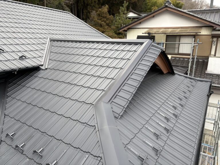 「入母屋屋根」の旧家を「レクトプルーフ」に葺き替え工事 施工前 現地調査 ご提案 弊社のホームページを見てご相談を頂き現地調査にお伺いいたしました。今回のお宅は昔ながらの大きな旧家ということもあり、平屋ですが屋根の高さや面数、納まりの複雑さなどをしっかり確認する必要
