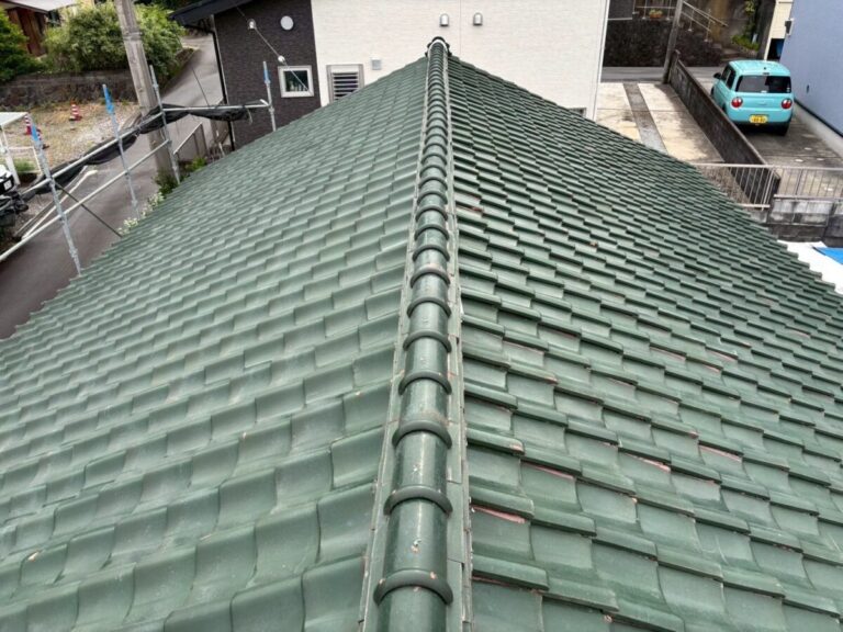 屋根瓦葺き直し 雨漏り補修工事 屋根ルーフィング(防水シート)張り替え 棟積み替え 施工前 現地調査 ご提案 お施主様より雨漏りのご相談があり現地調査に伺いしました。築年数も45年以上経過しているので瓦の下に敷いている下葺き材(木の皮と防水紙)の劣化が考えられます。