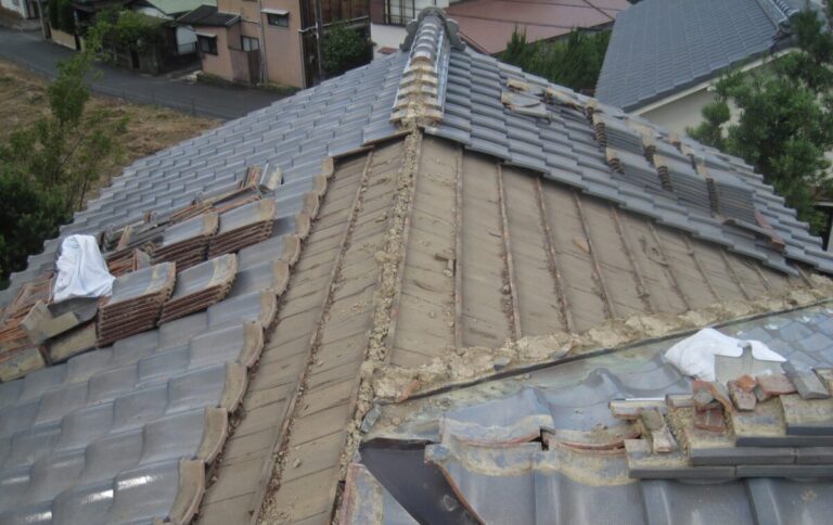 雨漏りのする瓦の屋根を部分的に雨漏り修理 瓦屋根葺き直し工事 施工前 現地調査 ご提案 ホームページを見たお施主様から雨漏りのご相談があり現地調査に伺いました。室内を拝見すると数か所の雨漏りが発生している状態でした。次にドローンで屋根を確認したところ、屋根材の瓦はい