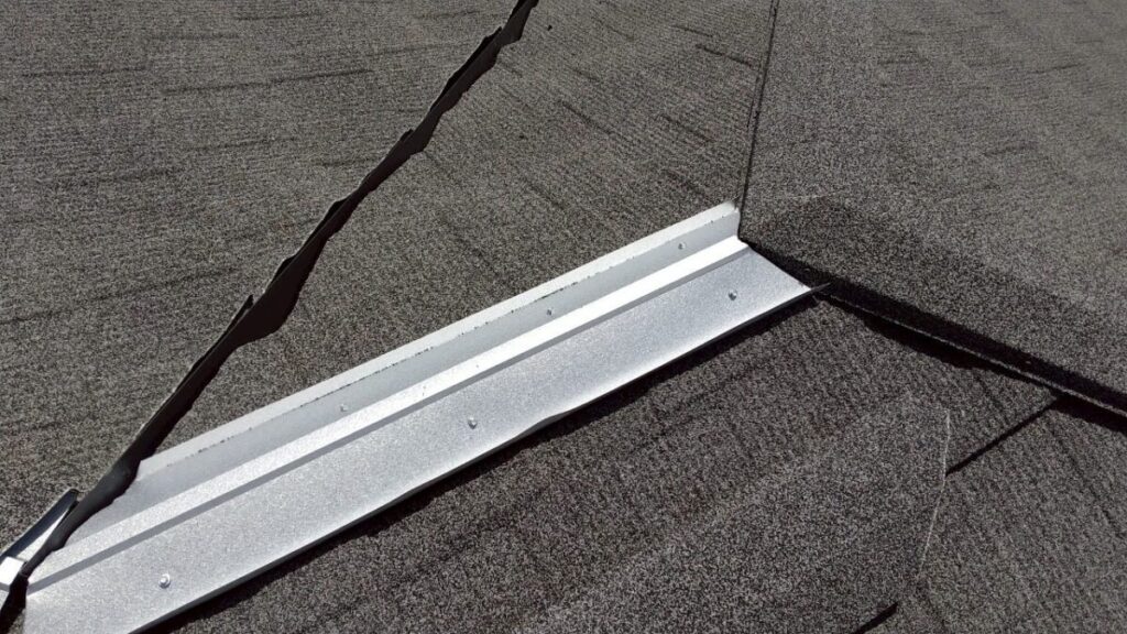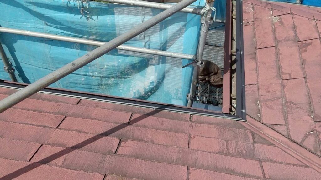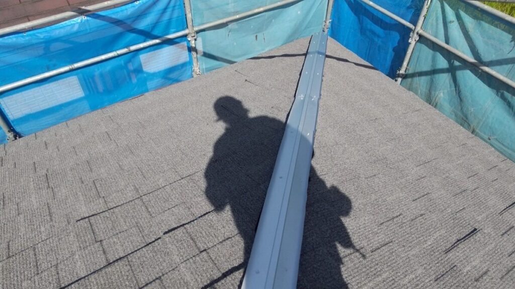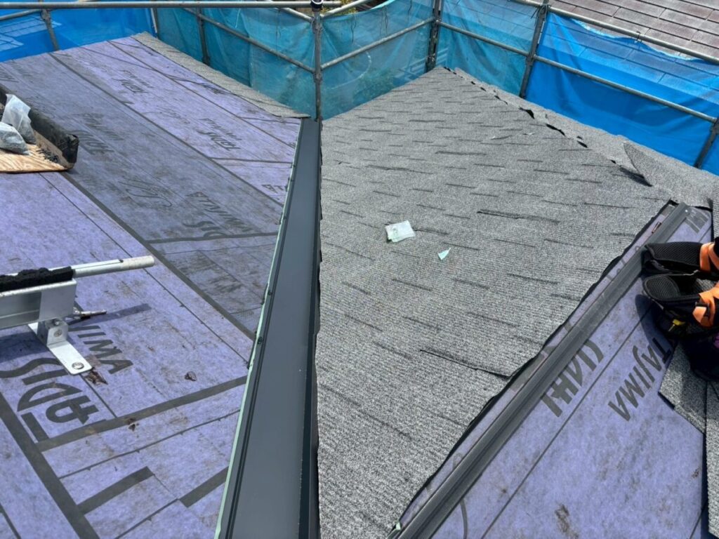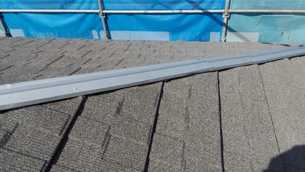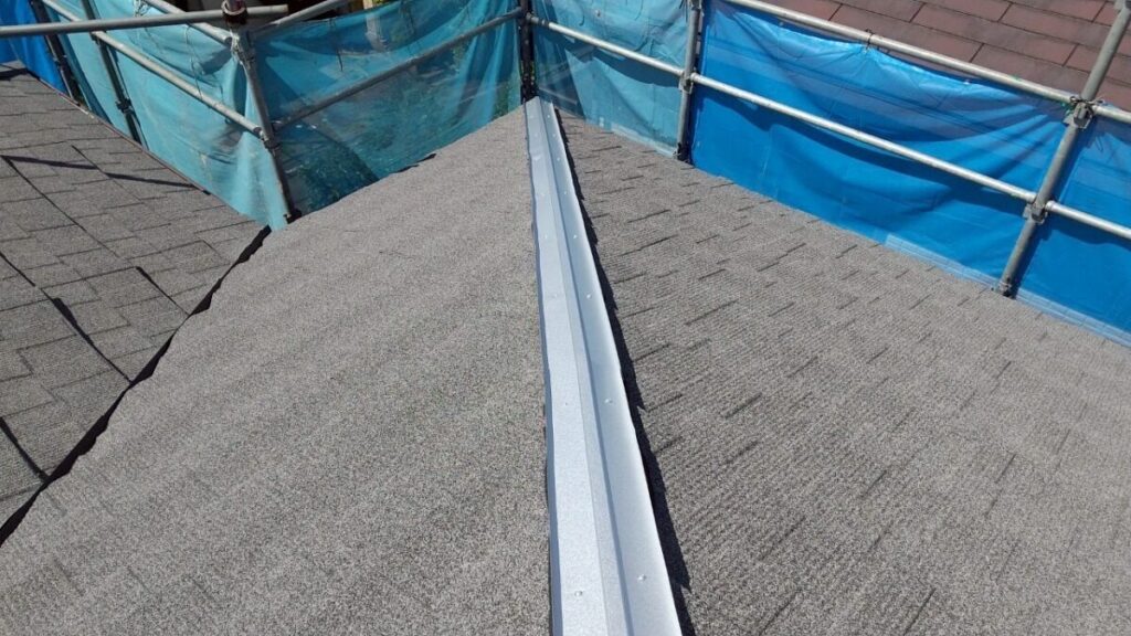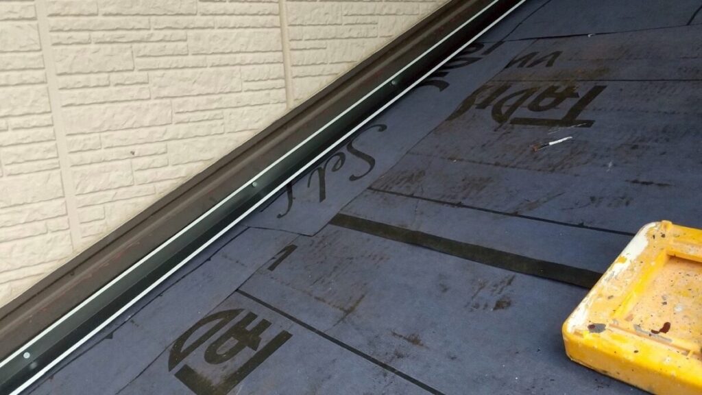 屋根の形状が谷になっている部分に谷板金を取り付けます。