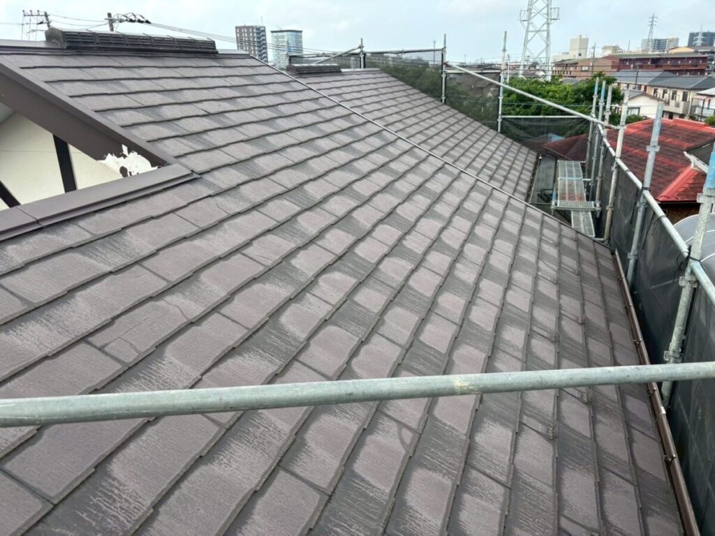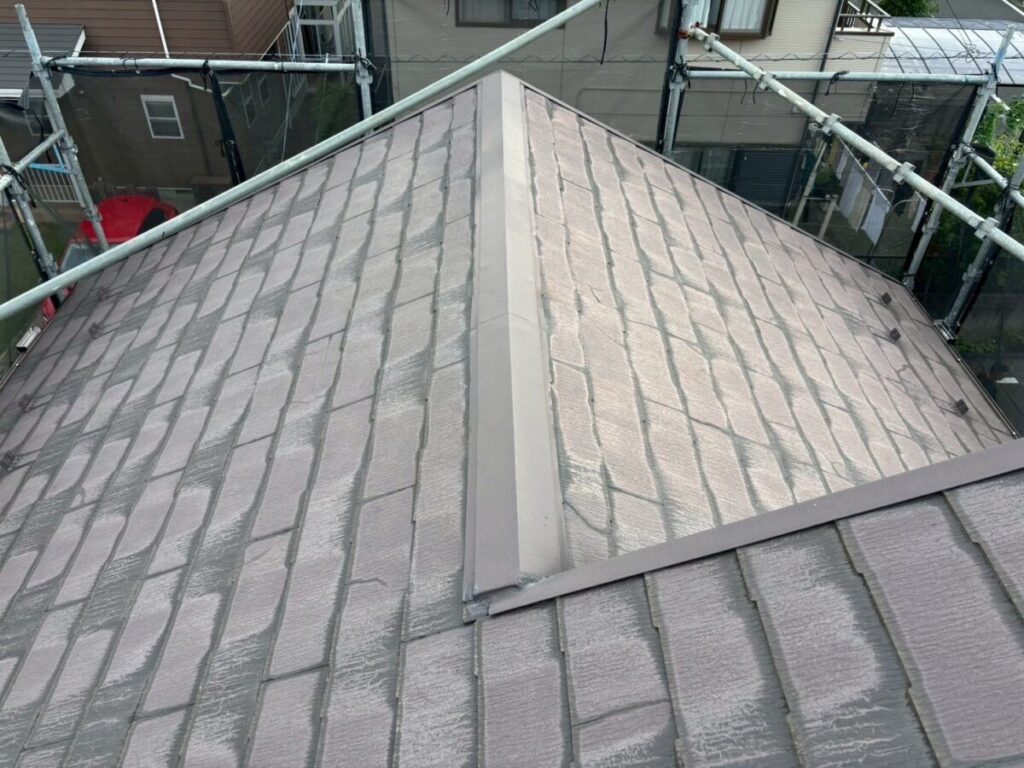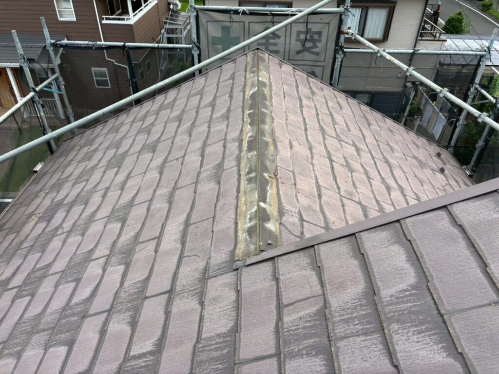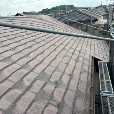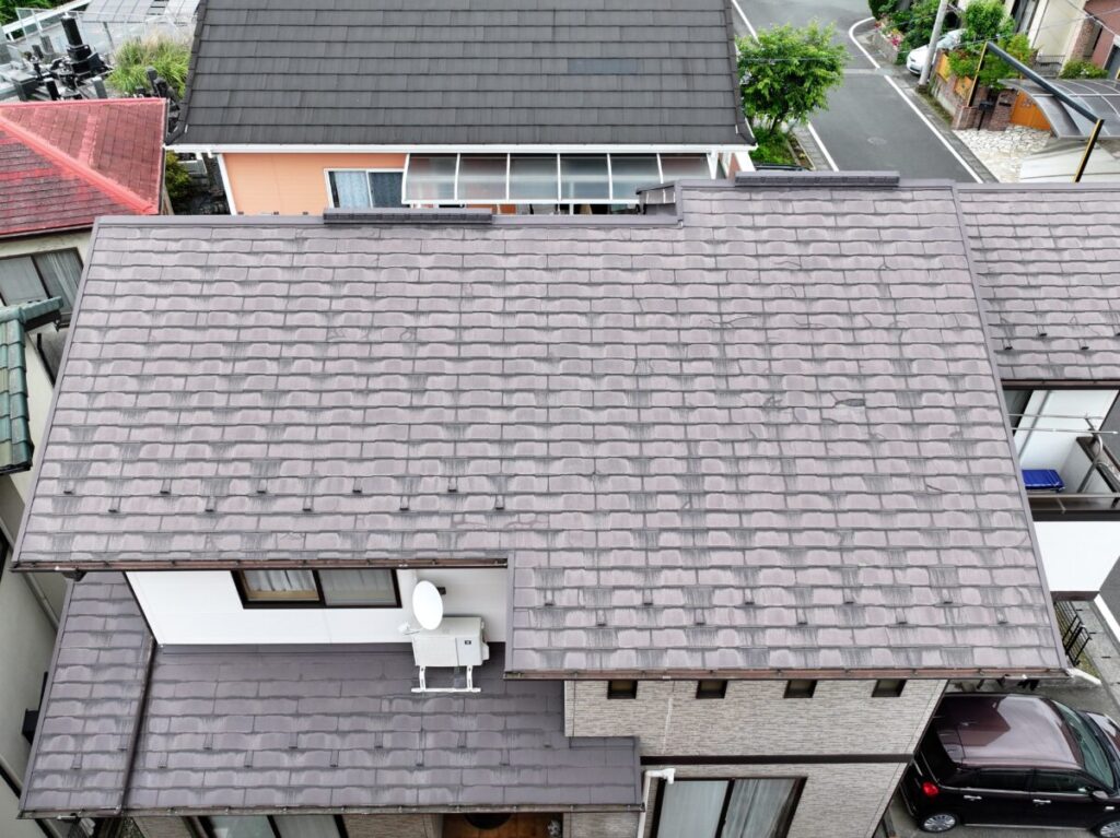 急にそれが使えなくなり、代わりの素材で作ったのがこのコロニアルNEOです。ただ、移行したばかりの時期の製品だったため、正直なところ強度が弱かったと言われています。実際の現場でも、・経年でひび割れが増える・表面がボロボロと欠ける・層のようにめくれる・屋根に上がると踏み割れてしまうこういった症状が多く見られます。特に厄介なのが「踏み割れ」です。普通のスレートなら気をつければ歩けますが、この屋根材は慎重に歩いても割れることがあります。なので点検や部分補修が難しい屋根材でもあります。築15年〜20年を過ぎたあたりから一気に割れが増える印象があります。塗装でどうにかなる屋根材ではなく、根本的な改修を考えるケースがほとんどです。見た目がまだ大丈夫そうでも、中身が弱くなっていることが多い屋根材です。同じコロニアルNEOが載っているお宅は、一度点検しておくと安心だと思います。