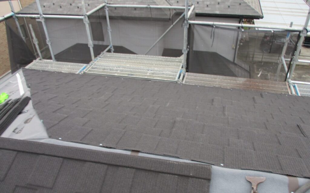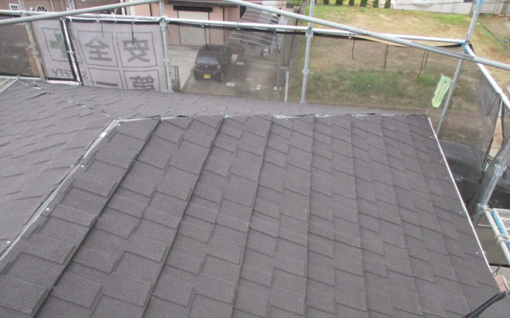すべての工程が完了し屋根のカバー工法工事が無事仕上がりました。これで屋根材の落下や飛散の心配もなくなり今後は長期間安心してお住まいいただけます。