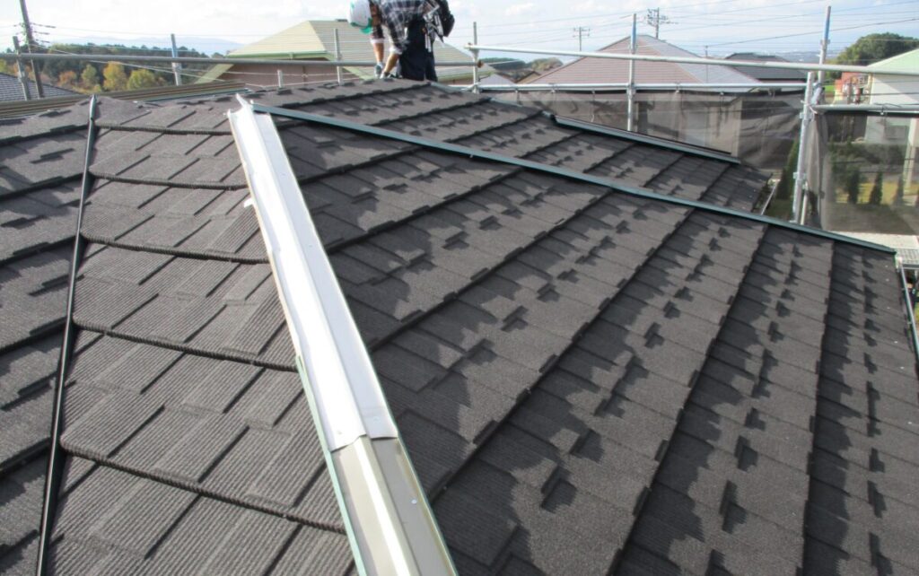 といった性能を持つ、非常に評価の高い屋根材です。軽量のため耐震性を損なわず、既存スレートの上から施工できるので 解体費・処分費を抑えながら、屋根を根本的にリニューアルできる のが大きなメリットです。破片落下の心配もなくなり、今後は長期間メンテナンスコストを抑えながら安心して暮らしていただけます。
