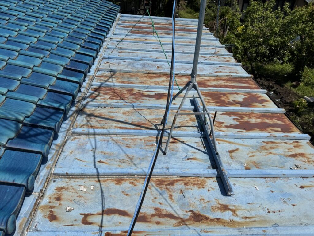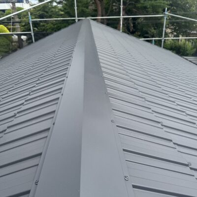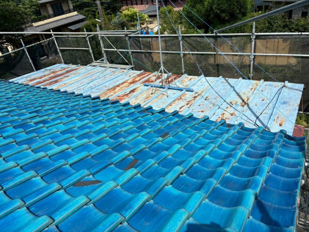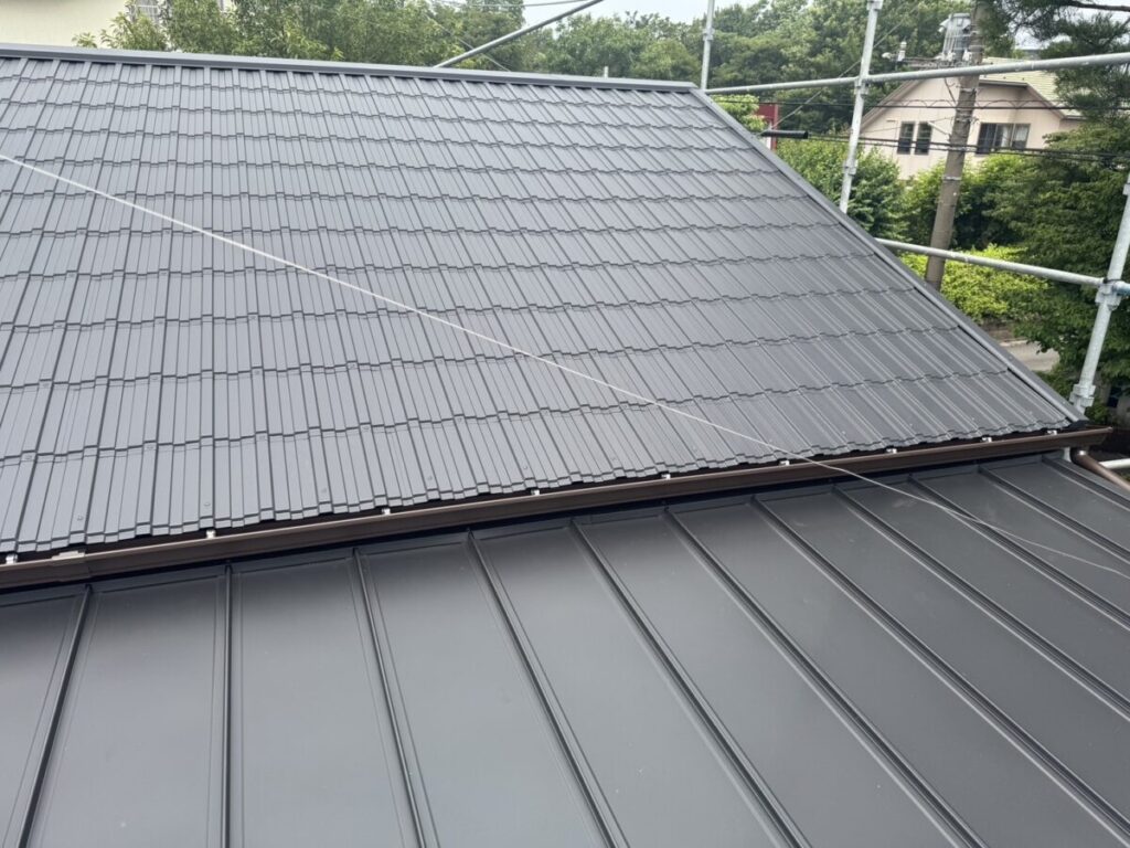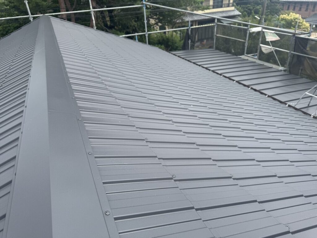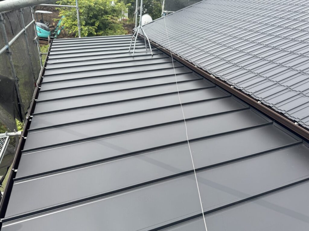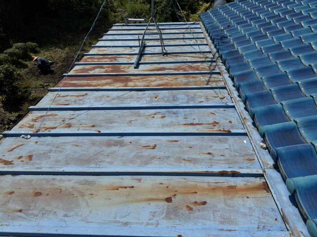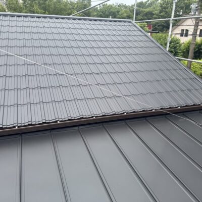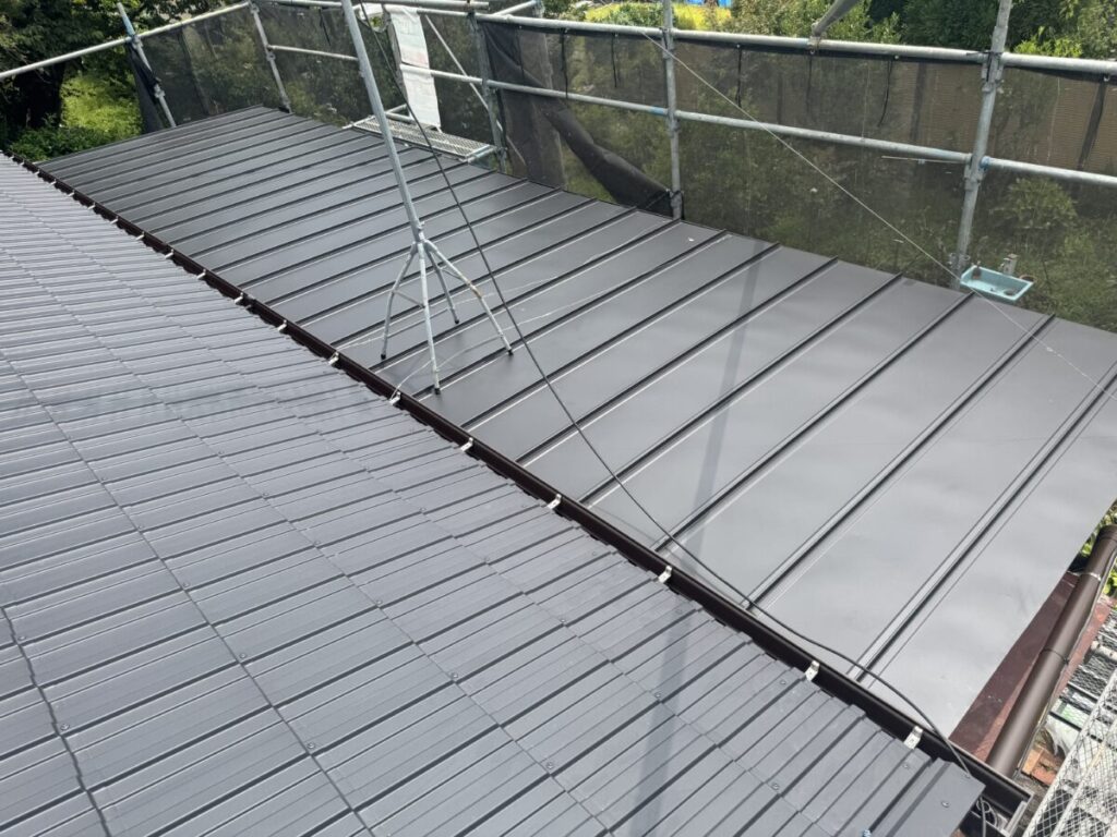 「瓦葺屋根」を撤去して「レクトプルーフ」「瓦棒葺き」は撤去して「立平葺き」に葺き替え工事