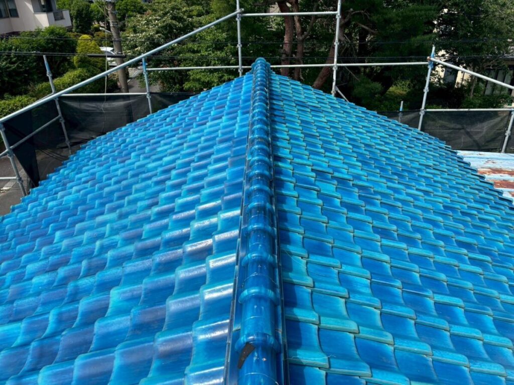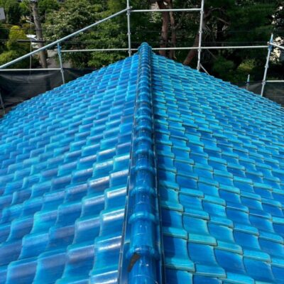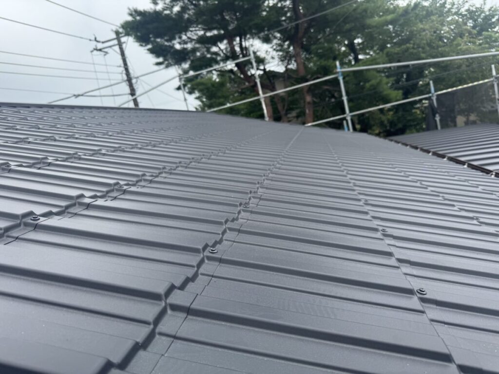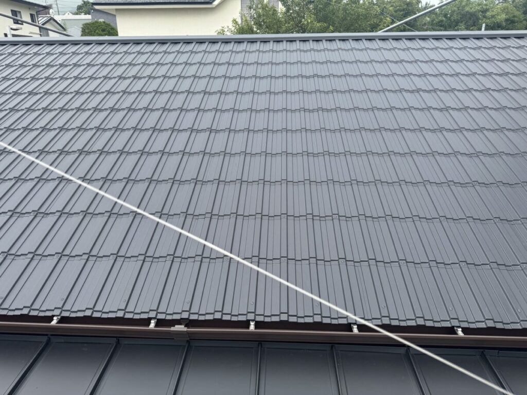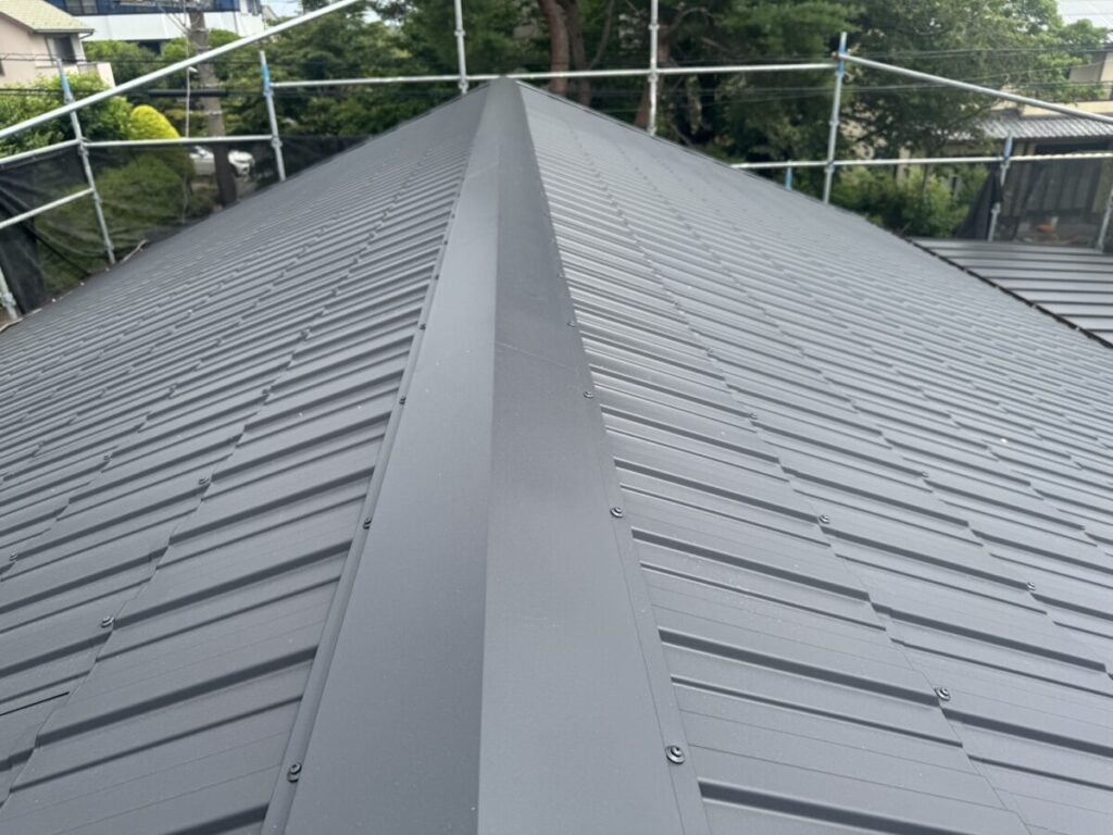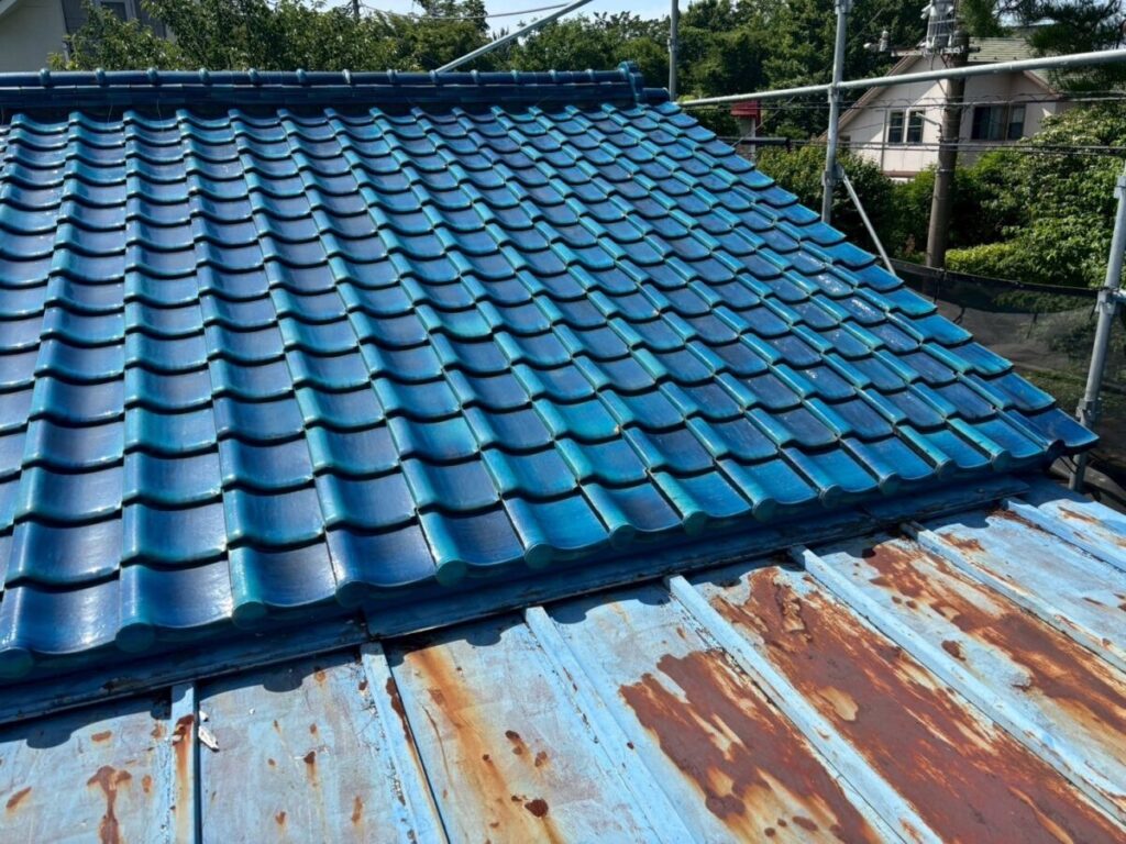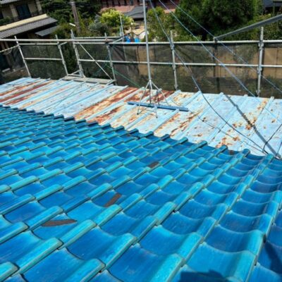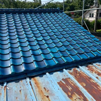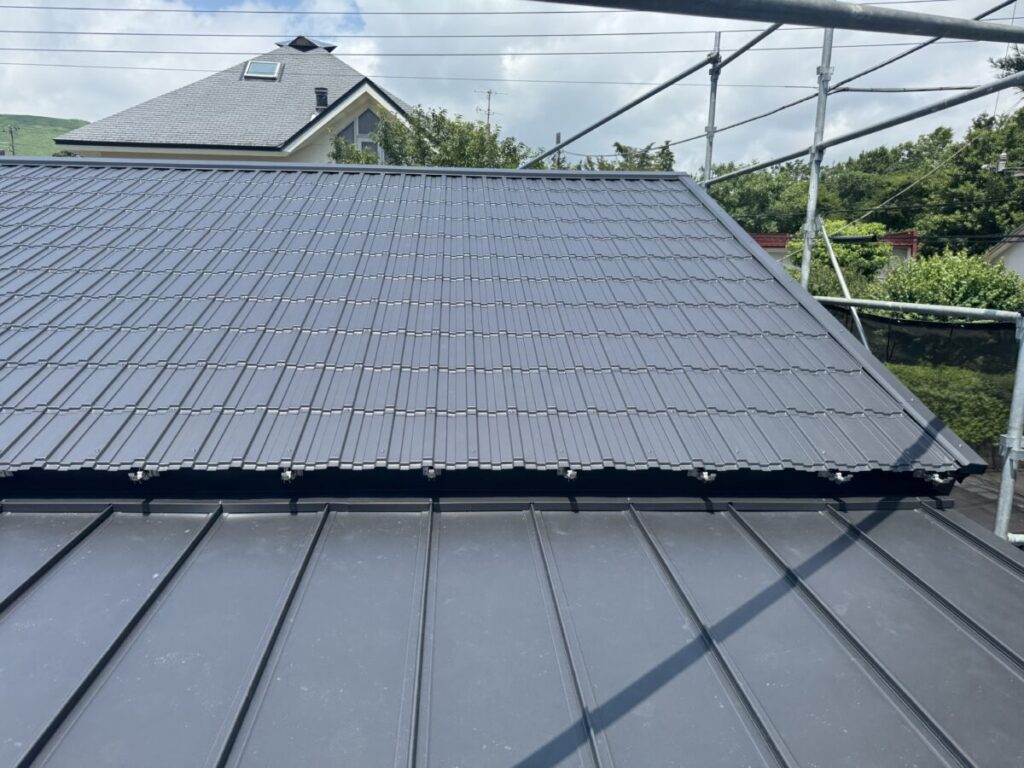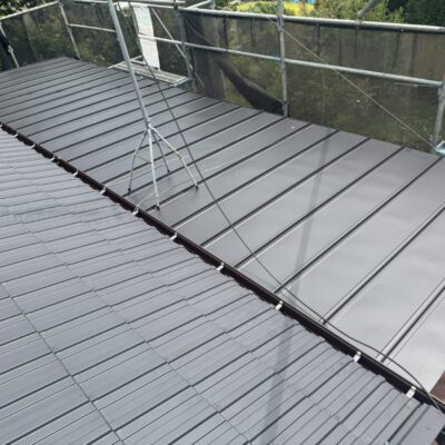 「瓦葺屋根」を撤去して「レクトプルーフ」「瓦棒葺き」は撤去して「立平葺き」に葺き替え工事