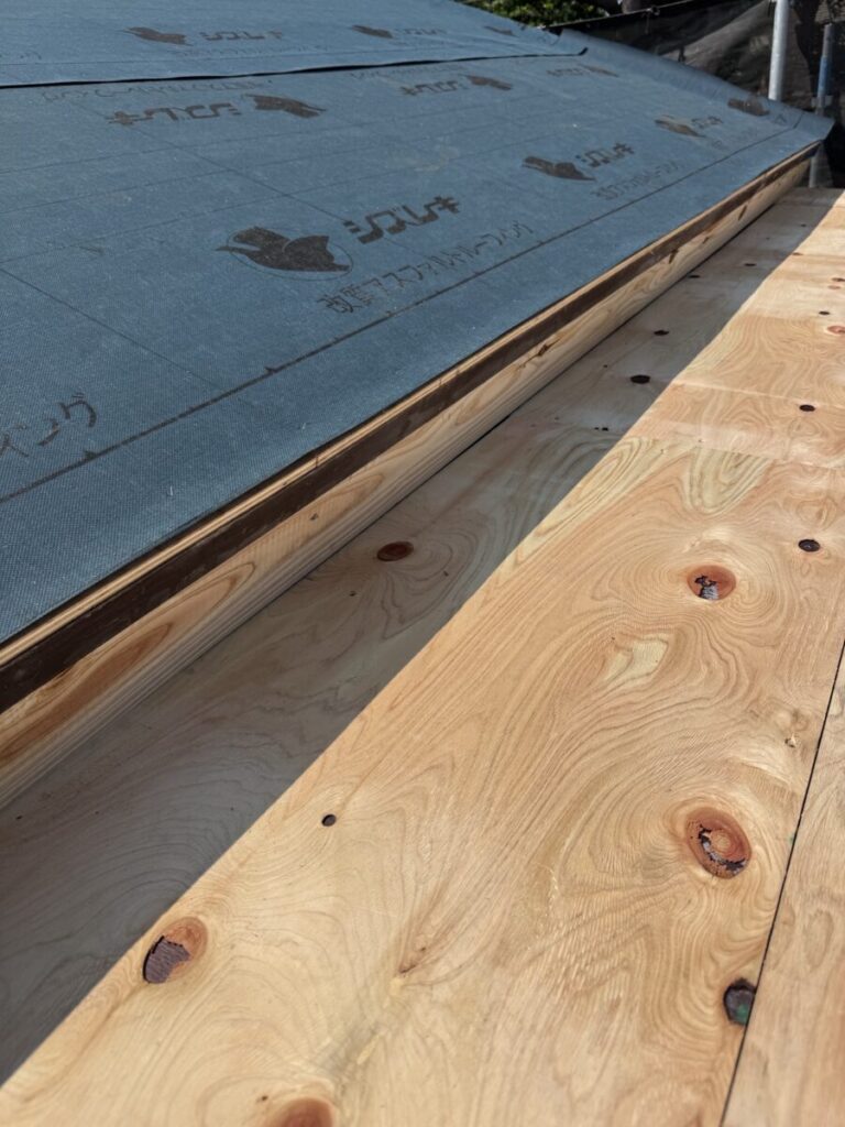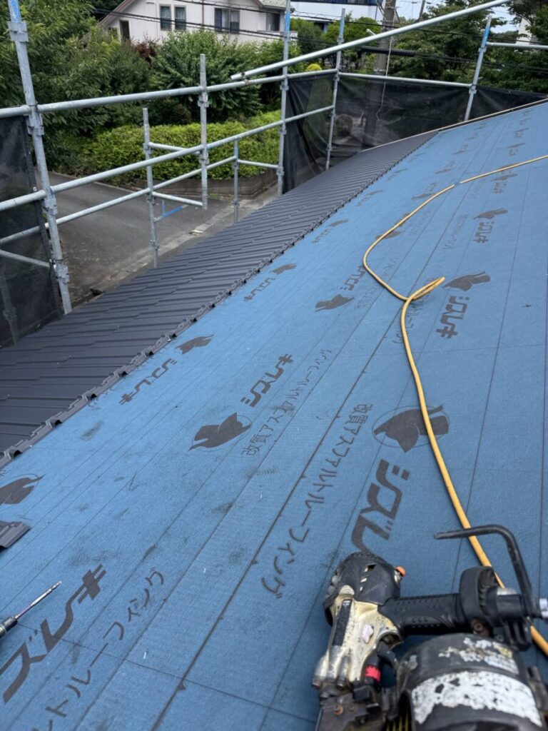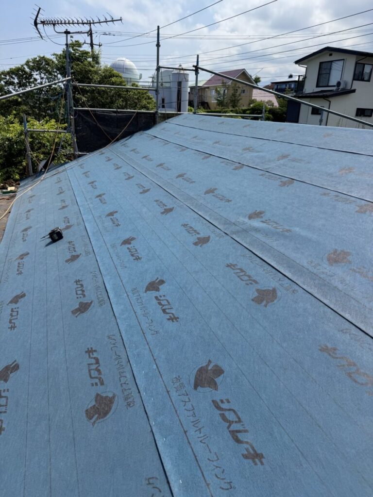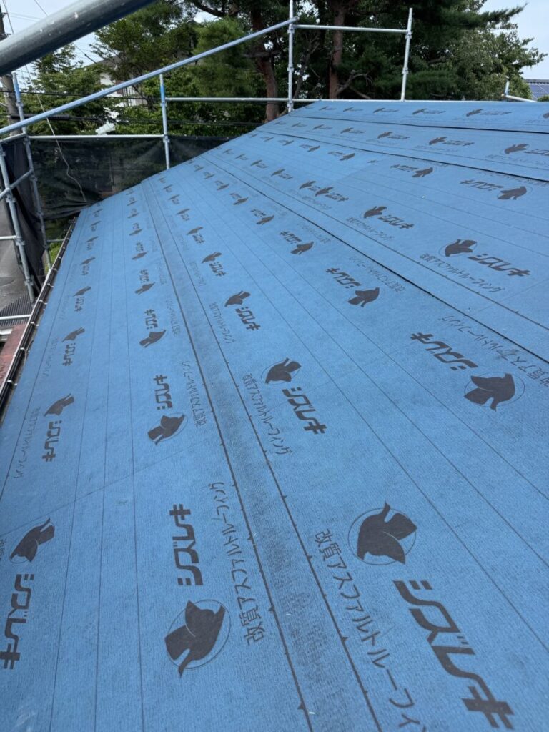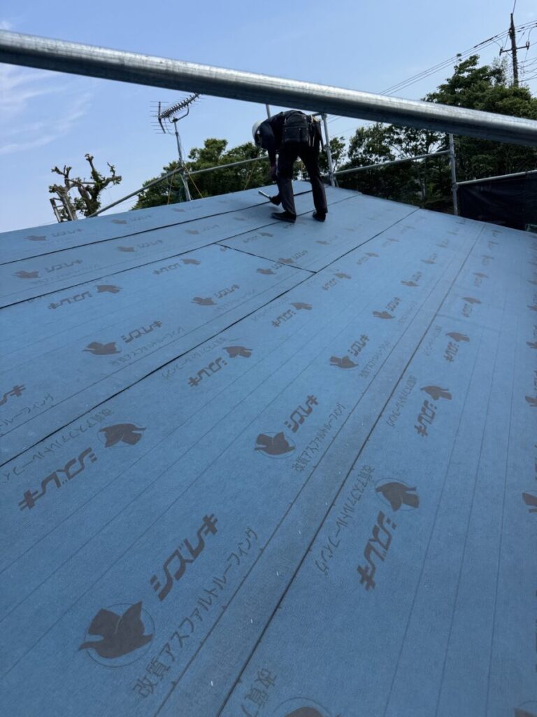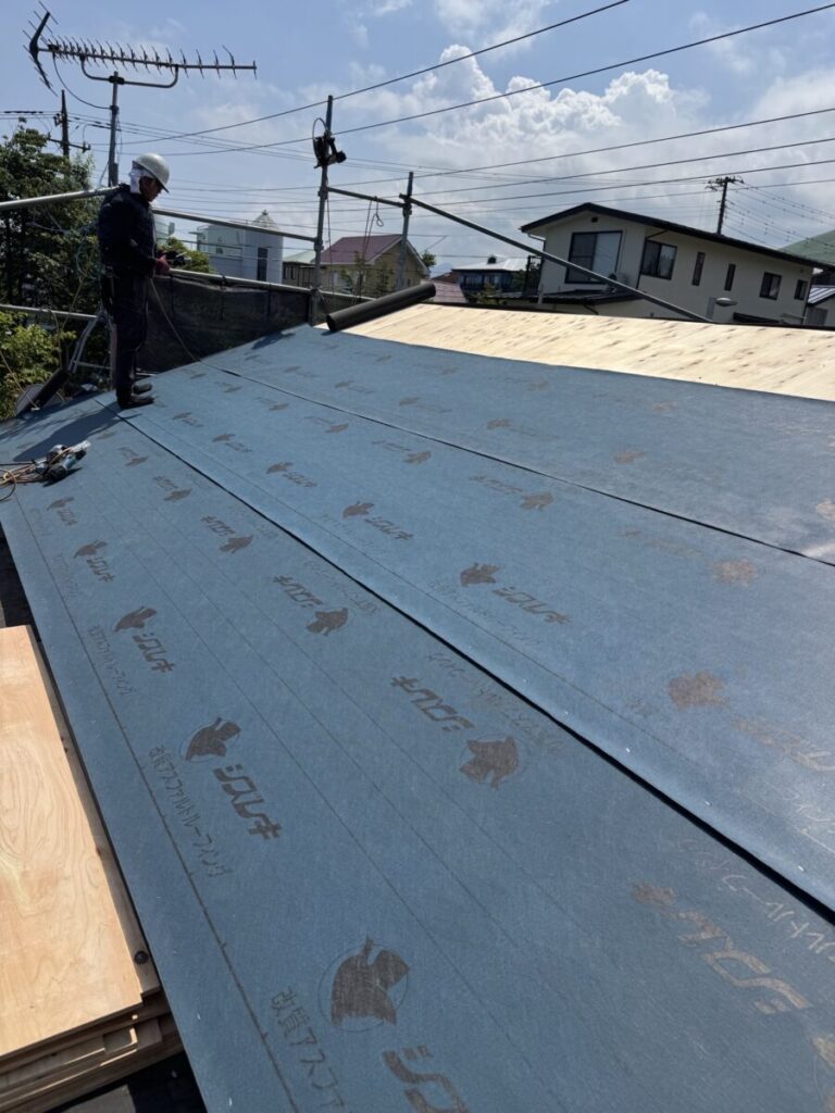 ルーフィング(防水シート)を張っていきます。
