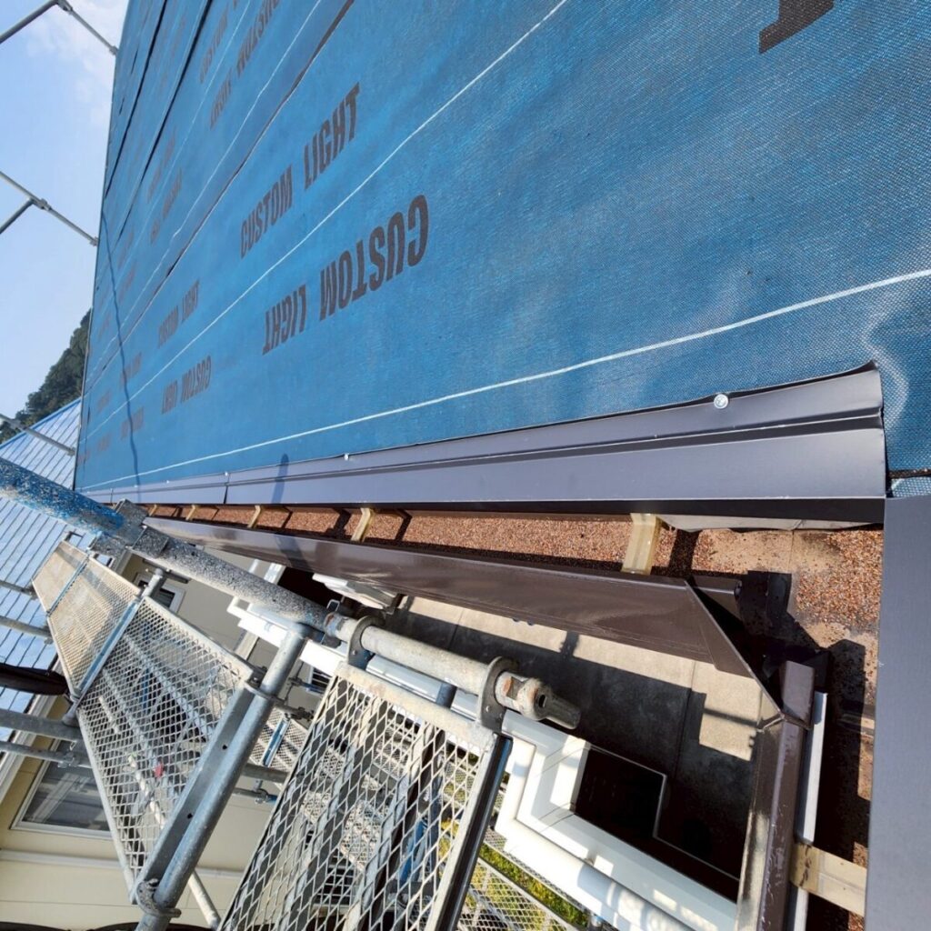 その後は、屋根材を納めるための各種役物を取り付けていきます。軒先やケラバ、谷などは雨仕舞いの重要なポイントになるため、役物の取り付け精度が仕上がりを大きく左右します。見えなくなる部分だからこそ手を抜かず、雨水の流れを意識しながら一つひとつ確実に施工していきました。