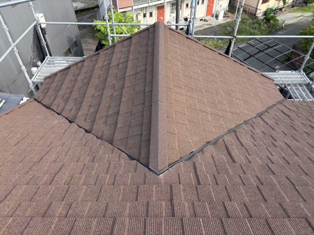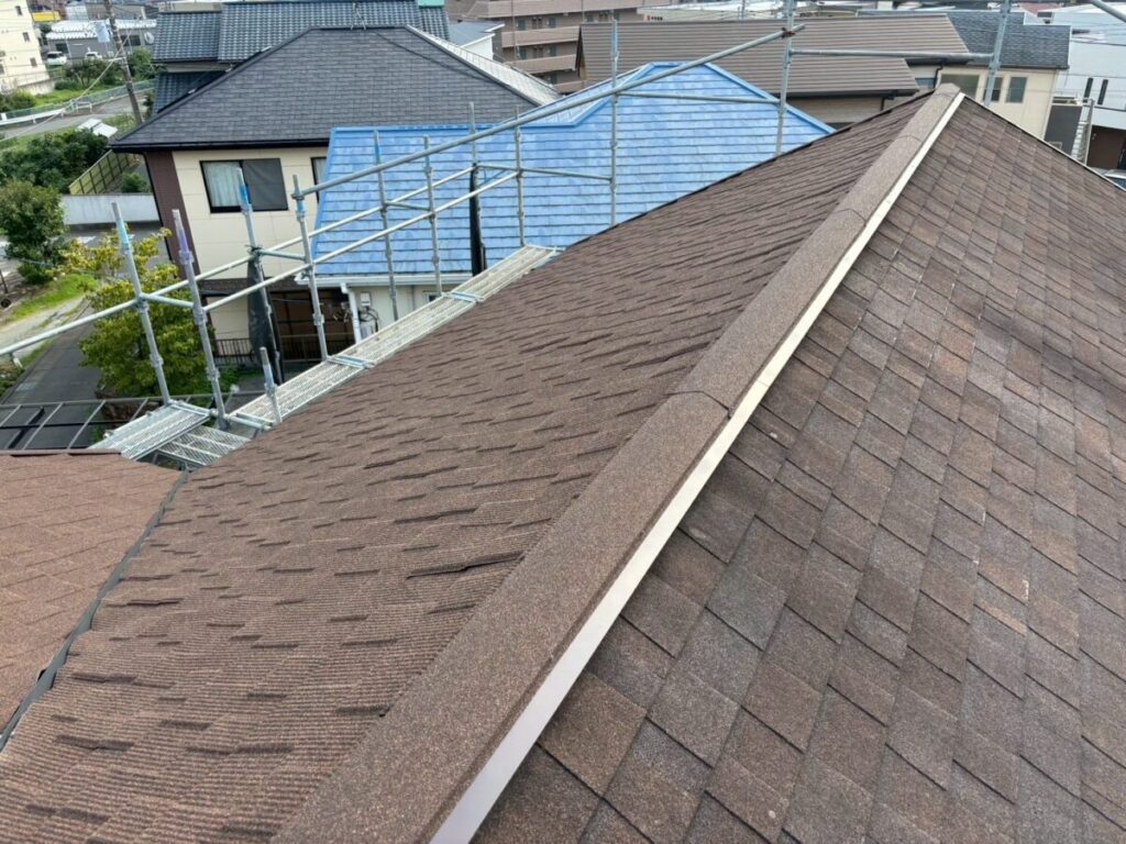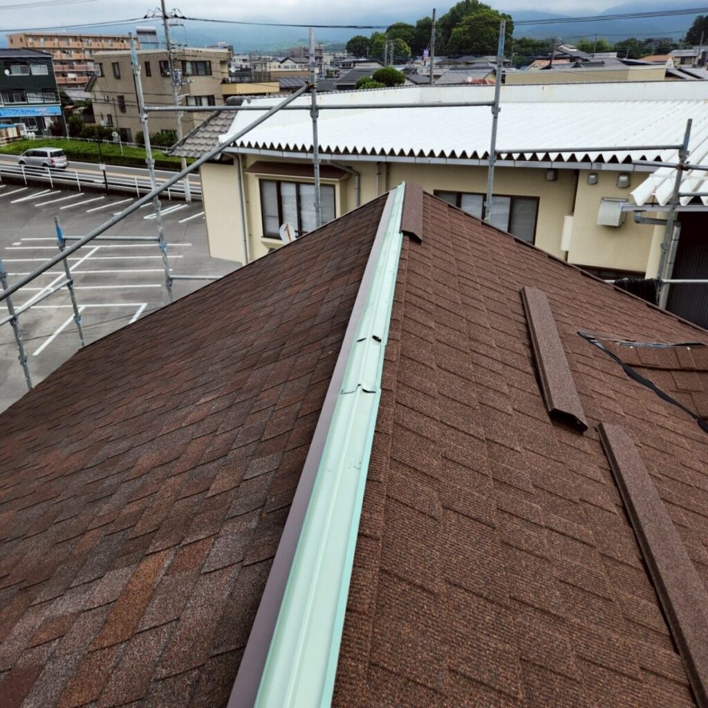 棟は屋根の頂上にあたる部分で、屋根面と屋根面が合わさる重要な箇所です。雨水が入り込みやすい部分でもあるため、見た目以上に大切な工程になります。