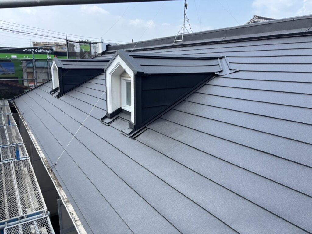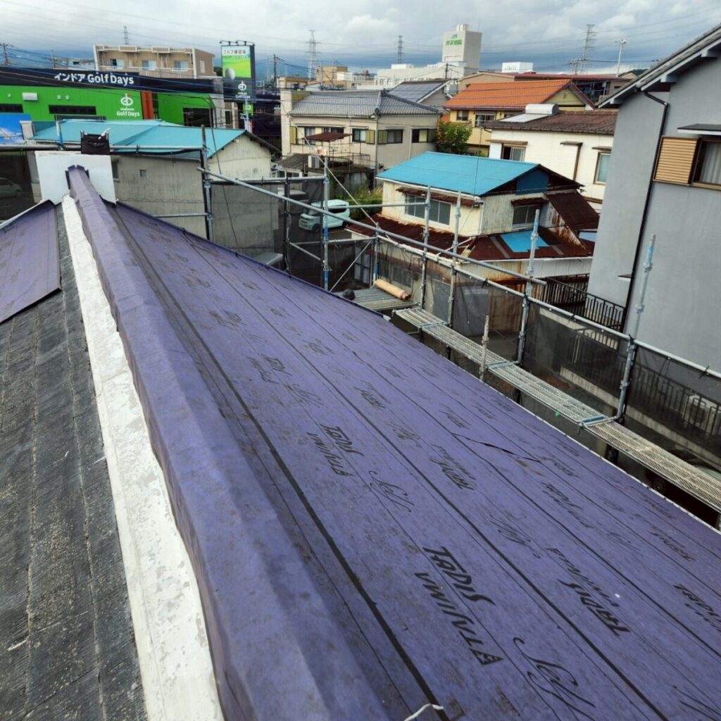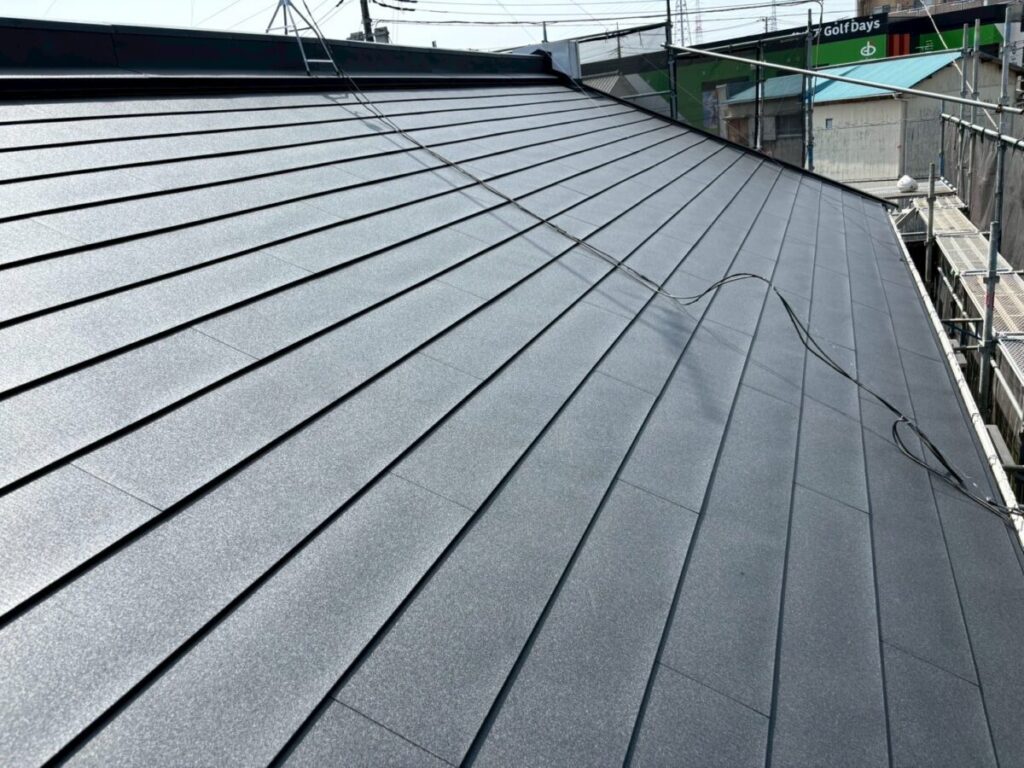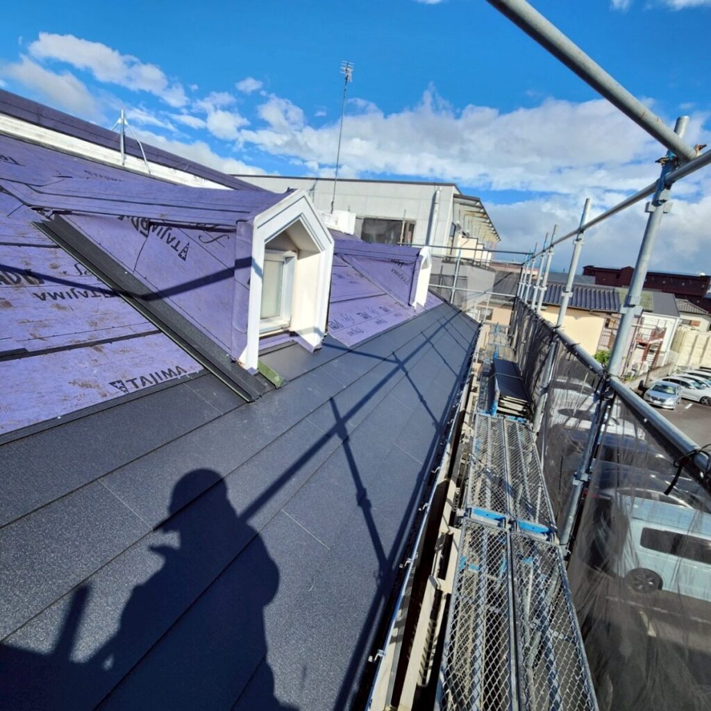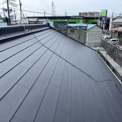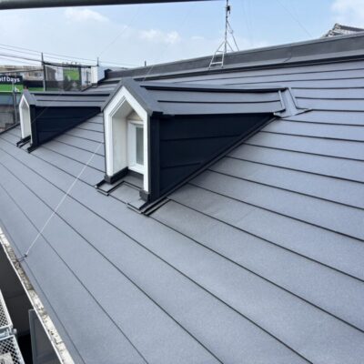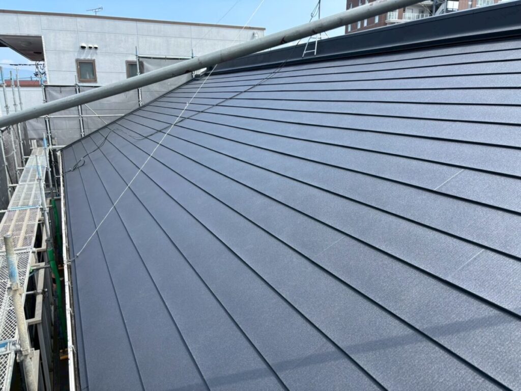 集合住宅の屋根「化粧スレート」→ガルバリウム鋼板「シルキーG2」を重ね葺き