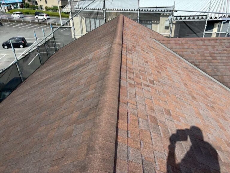 「アスファルトシングル」→「石付ガルバリウム鋼板セネター」に部分的なカバー工法工事 施工前 現地調査 ご提案 静岡県裾野市のお施主様より、雨漏りが発生しているとのご相談をいただき、現地調査にお伺いしました。まずは室内の雨漏り状況を確認し、その後ドローンを使用して屋